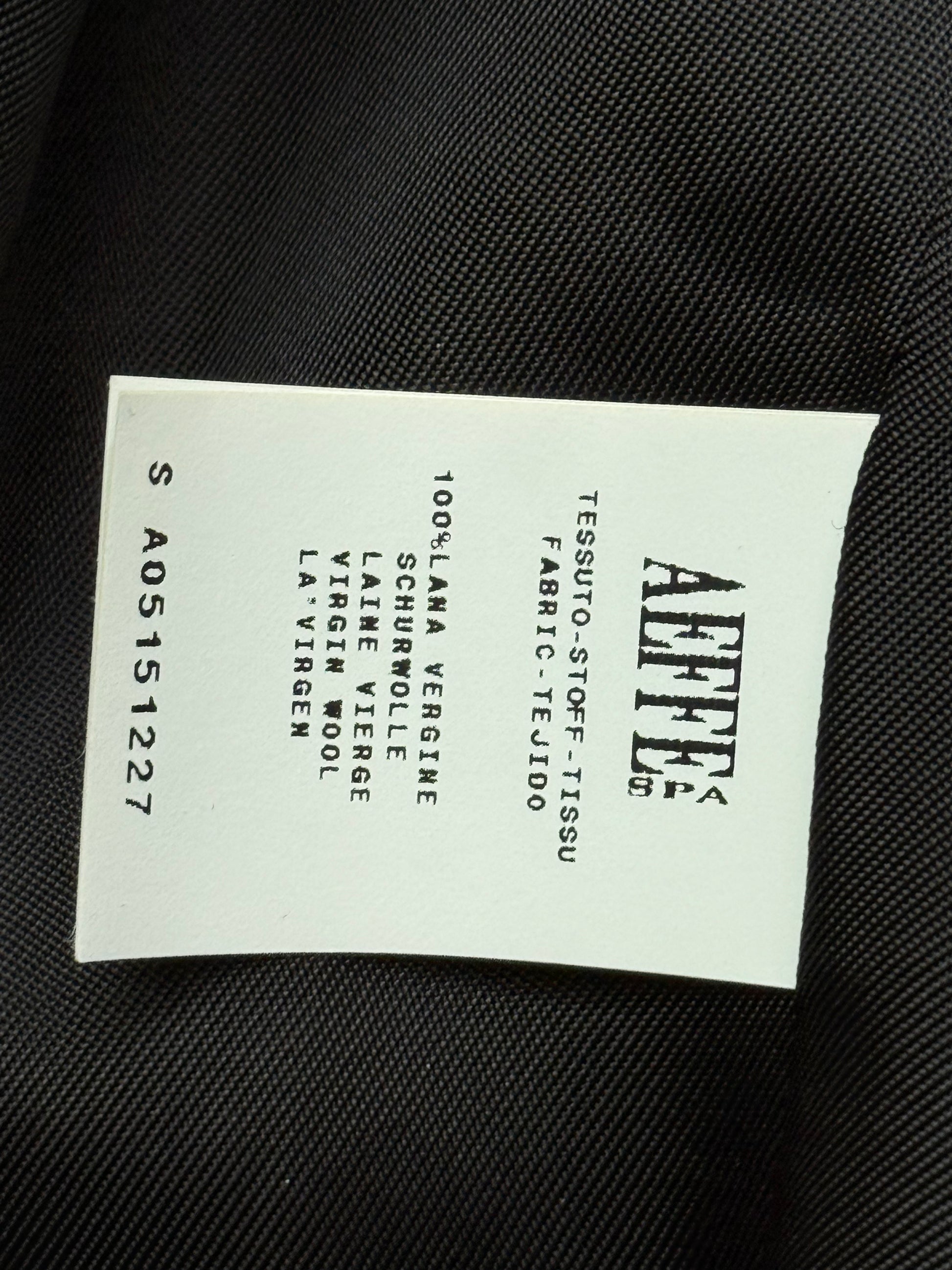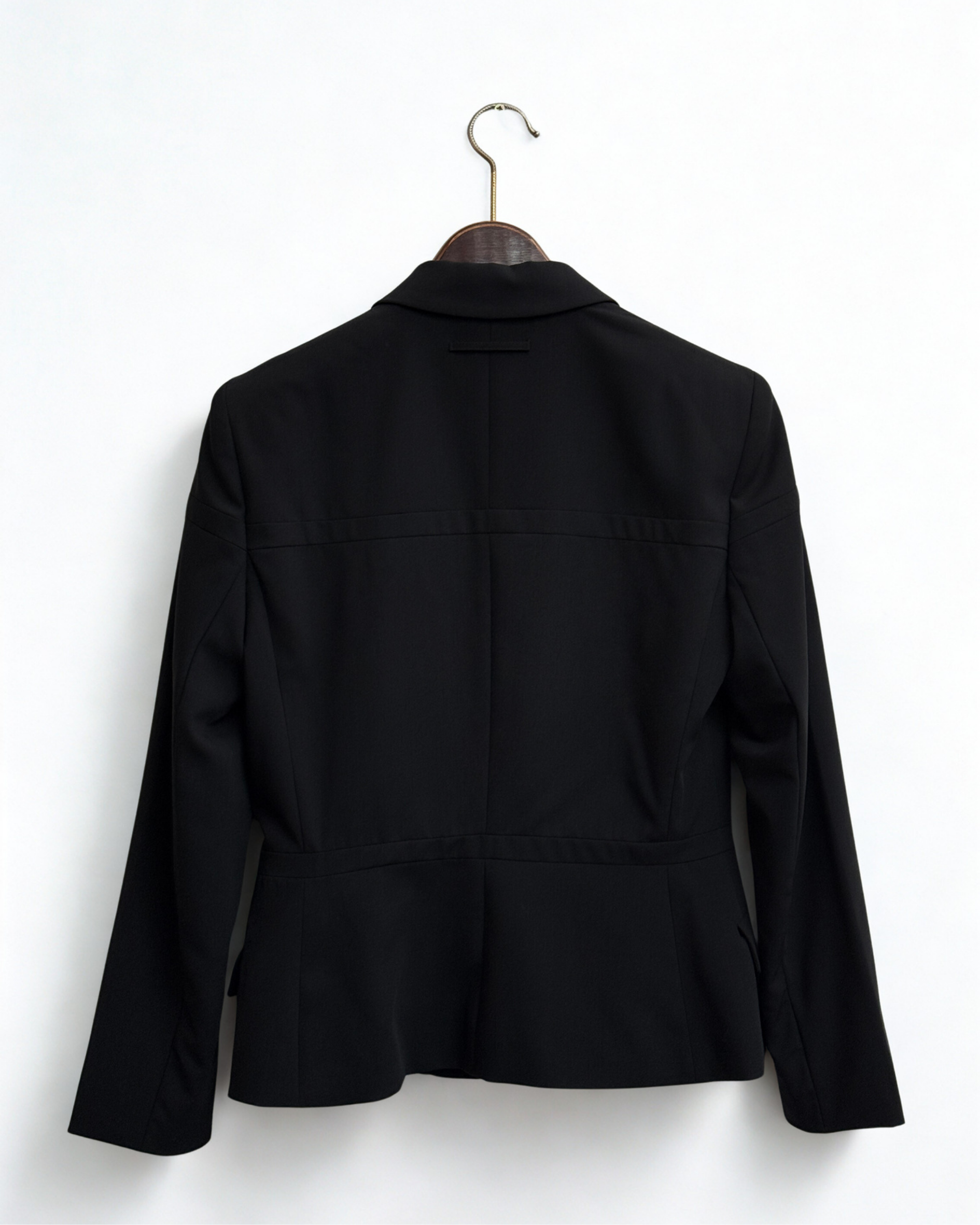 Crafted from 100 percent wool, the blazer features a sharply structured silhouette that reflects Gaultier’s refined yet subversive approach to tailoring. The minimalist black palette enhances its versatility, while the precision of the cut gives it strong presence and timeless appeal.